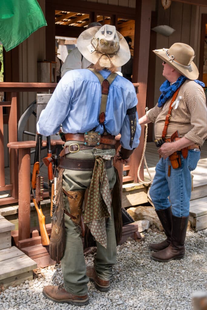Back in the retail gun show era of Duck Creek, CAS was promoted then. This is going back to the 1990’s. Shooting revolvers and lever-actions is just pure fun, having an excuse to assume a alias and dress the part adds to the excitement. As you can see from some of the photos attire and gear range from fancy gambler types to plain old cow folks, basically what ever your imagination and budget will take you.