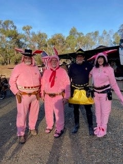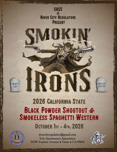 Meet the River City Regulators now California’s oldest SASS club from Davis, California. This coming October will host the California State Black Powder Shoot and the Smokeless Spaghetti Western. December there is Christmas Blast based on the movie “Christmas Story”, notice a few cowboys dressed in Ralphy Pink Bunny Pajamas