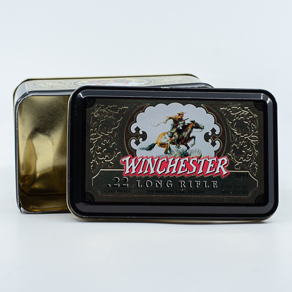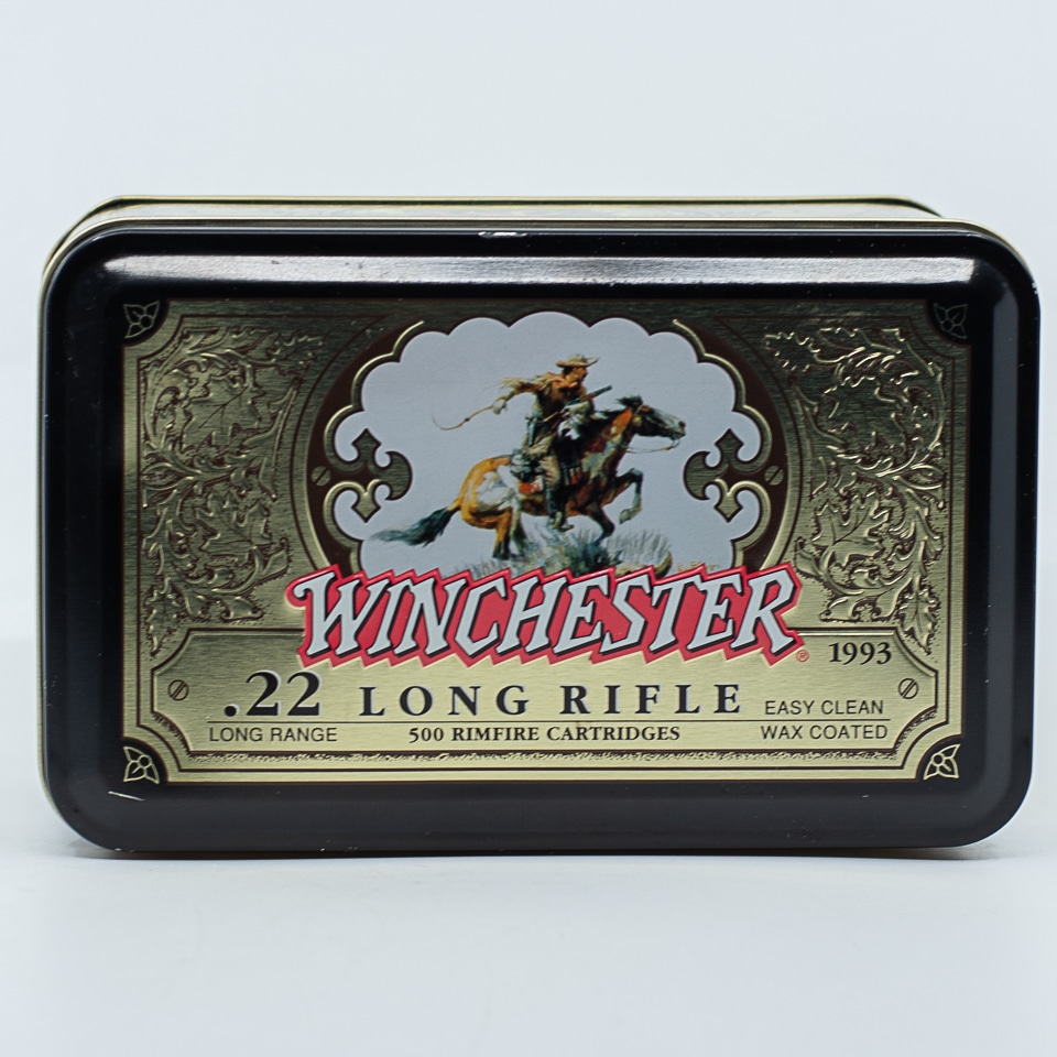 1993 Commemorative Winchester .22 LONG RIFLE (22-LR) Tin Box in great shape. No live rounds, just a collectors box.