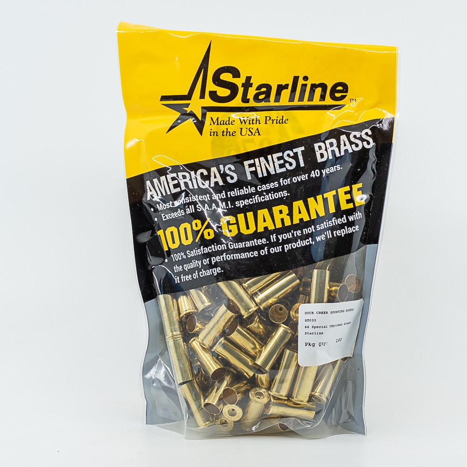 Bag of 100 factory new STARLINE unprimed 44 Special (44 S&W SPECIAL) brass, uses large pistol primers. Starline item #1700