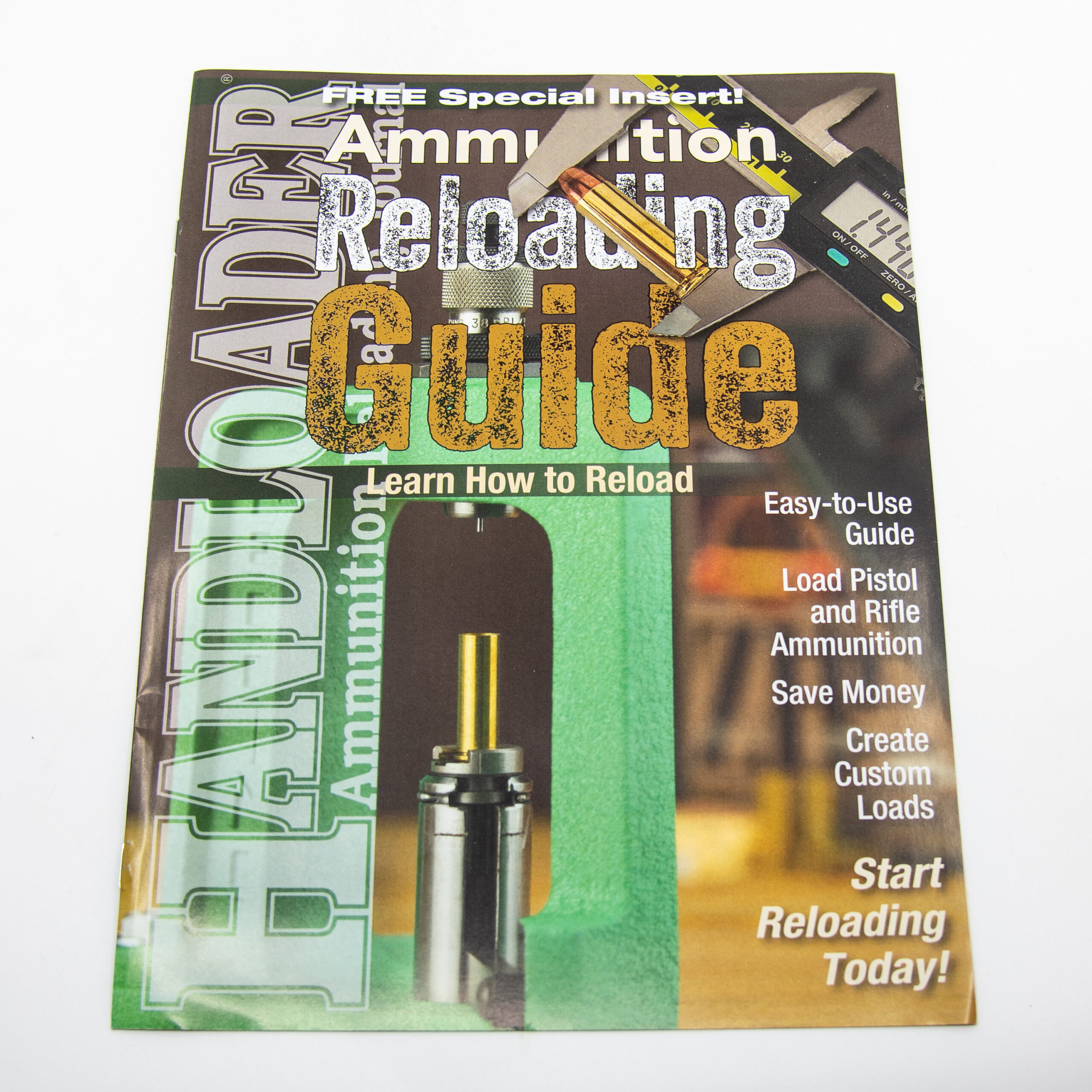 10 page guide to cartridge reloading. Easy-to-follow guide detailing the steps involved in making ammunition. Each step from start to finish is color illustrated, one for manufacturing pistol ammunition, one for rifle. Each step demonstrates the needed tools. Published by Wolfe Publications.